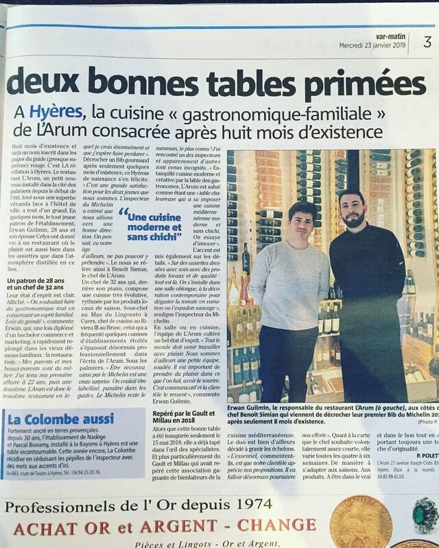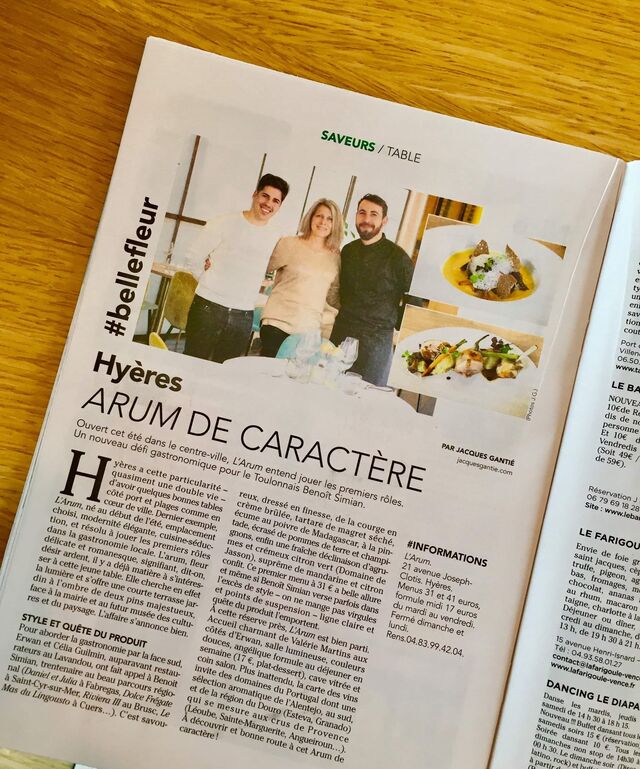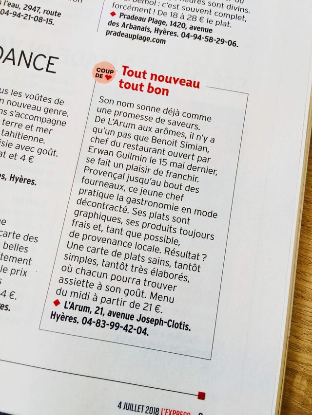De L'Arum à l'arôme, il n'y a qu'un pas... La simplicité du jeu de mot reflète la philosophie de notre établissement; la beauté d'un produit sélectionné, la simplicité dans sa préparation, sa juste mise en valeur... La cuisine de l'Arum est un juste équilibre entre mon parcours, mes envies, celles de l'équipe, le choix de nos partenaires et fournisseurs, mais l'ingrédient principal reste l'envie de faire plaisir en toute simplicité...